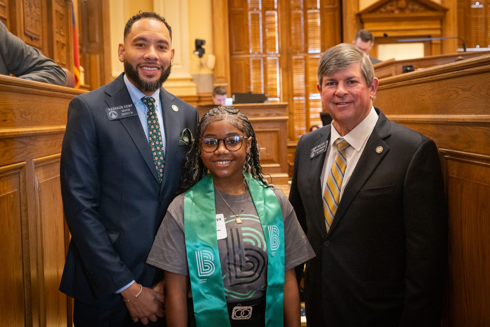 The Georgia Senate and House formally recognized Big Brothers Big Sisters through resolutions sponsored by Sen. Nan Orrock and Rep. Lydia Glaize. President Pro Tempore Larry Walker III helped ensure Littles felt welcomed and celebrated in the Senate Chamber.